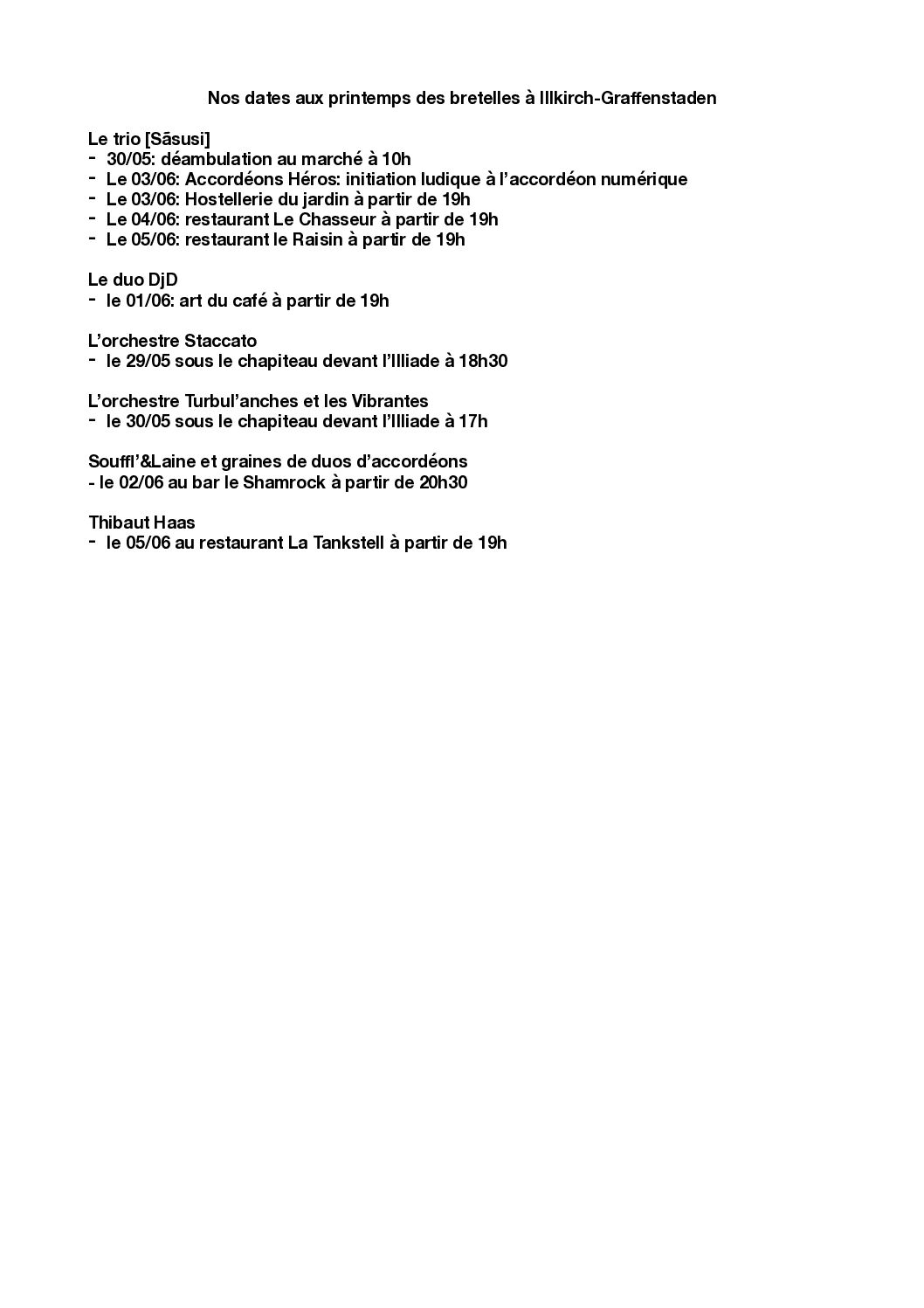 Nos dates aux printemps des bretelles à Illkirch-Graffenstaden Le trio [Sãsusi] 30/05: déambulation au marché à 10h Le 03/06: Accordéons Héros: initiation ludique à l’accordéon numérique Le 03/06: Hostellerie du [...]